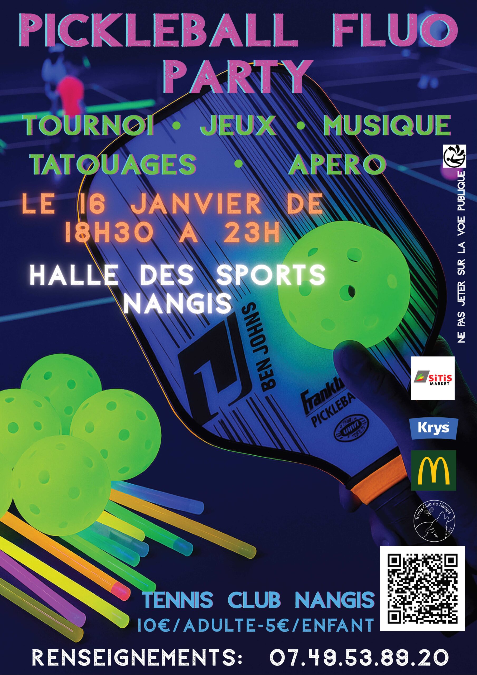 Le vendredi 16 janvier de 18h30 à 23h, venez vous amuser et découvrir le Pickleball dans une ambiance 100 % FLUO