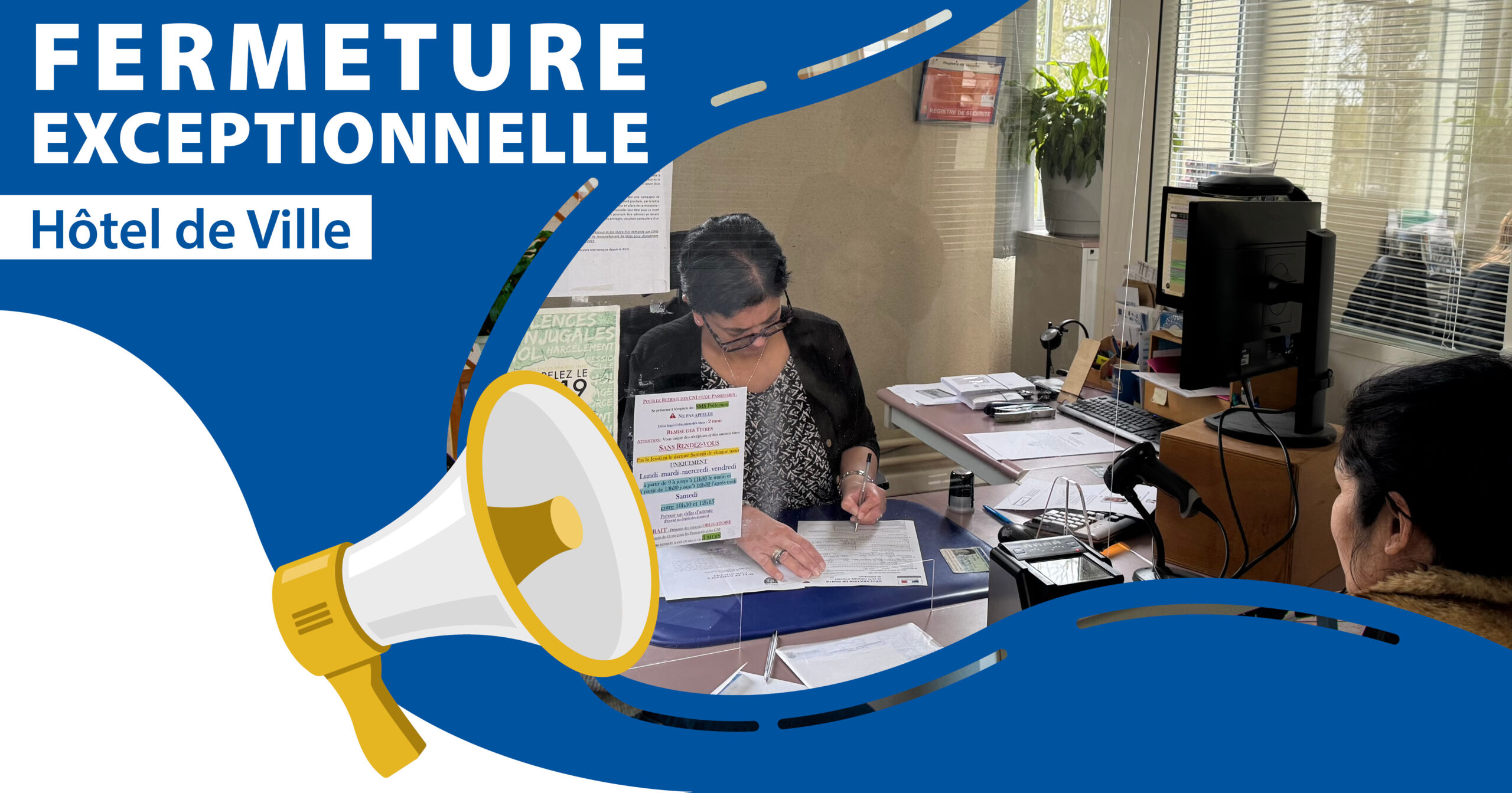 En raison des élections municipales et communautaires, l’accueil de l’Hôtel de Ville sera exceptionnellement fermé au public ce lundi 16 mars 2026, toute la journée.
